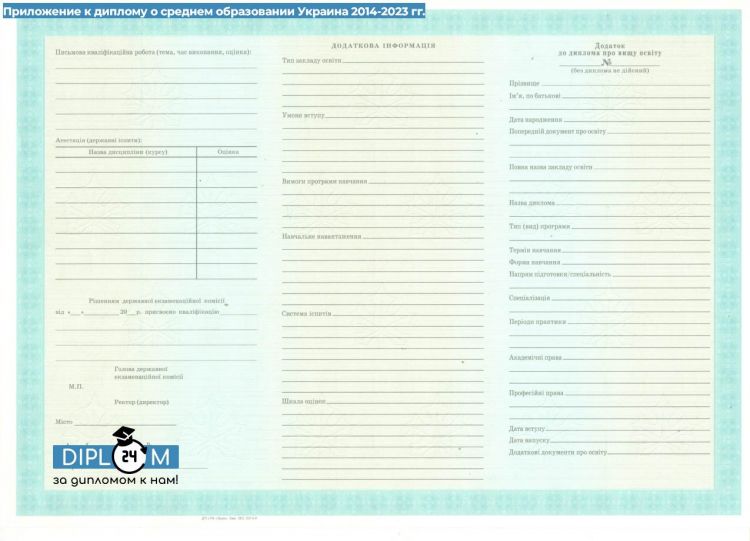 Диплом о среднем образовании Украины 2014-2023 гг.