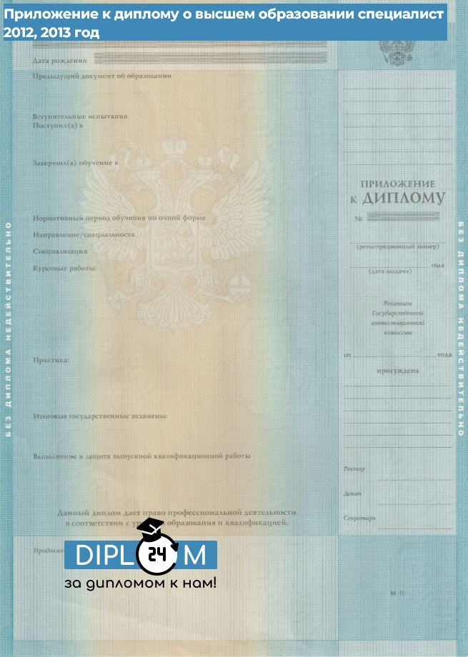 - Комплектация: обложка синего цвета + диплом + приложение к диплому