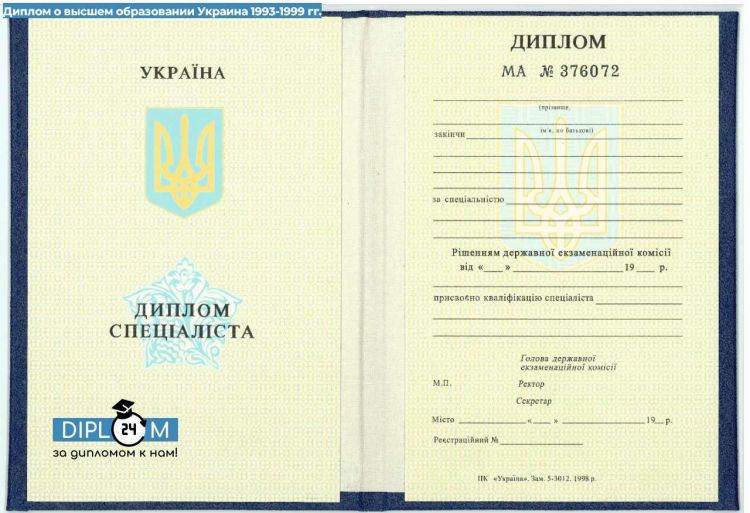 Диплом Украины о высшем образовании 1993-1999 гг.